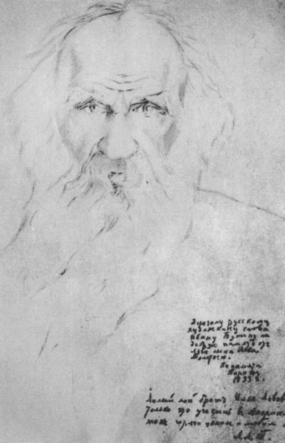 Портрет Л. Н. Толстого работы Льва Львовича Толстого с дарственной надписью Бунину. Париж, 1933 г.