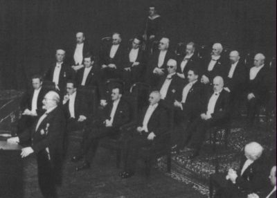 Церемония вручения Нобелевской премии. И. А. Бунин в первом ряду крайний справа. Стокгольм, 1933 г.