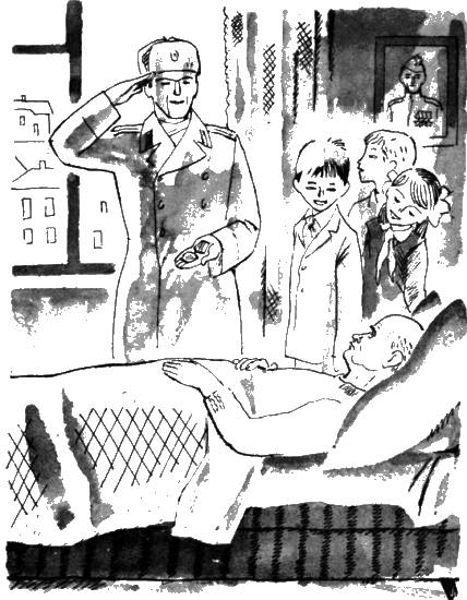 Офицер положил на одеяло удостоверение и новенькую медаль, пожелал деду скорей поправляться и откозырял.