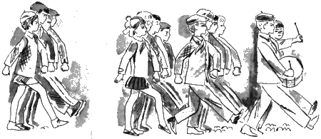 Так мы и вмаршировали в наш двор: Васька с барабаном впереди, я — рядом, как ассистент, за нами — отряд, а сзади Борька Шилов плетется.