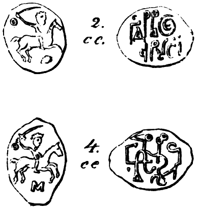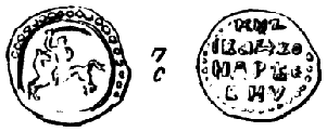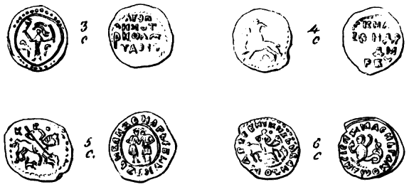 Кстати, даже русские буквы на русских монетах иногда выглядят крайне необычно для современного человека. Так, например, буква «О» изображалась иногда в виде человеческого профиля, смотрящего направо, а буква «Н» – в виде животного (?), похожего на собаку [54], с.120.