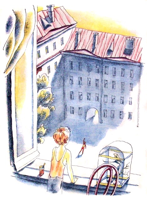 Однажды днём я сидел дома и обедал. Вдруг слышу: электричка свистит. Прямо под окном! Я выглянул. Смотрю: во дворе какой-то мальчишка. Весь чёрный. Как негритёнок. Только волосы ужасно белые. Как у Вадика. Ну конечно, это был он! Я быстренько окно раскрыл.