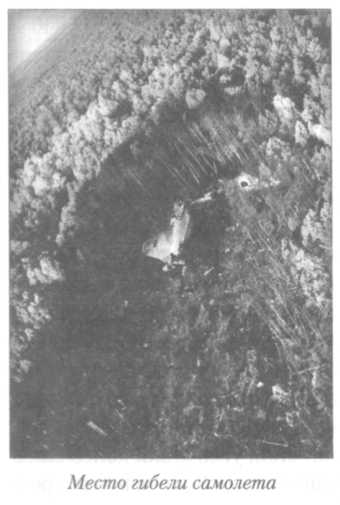 Командир дает команду экспериментаторам покинуть самолет. Экспериментатор Фомин Н. А. покидает самолет через задний аварийный люк и приземляется на парашюте на лес.