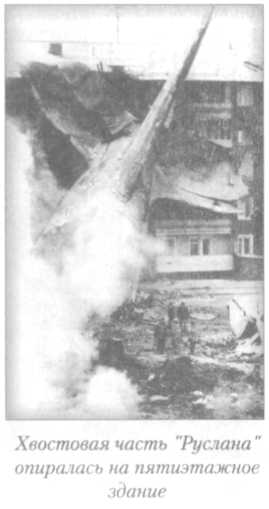 В 14:40 самолет зацепил крылом деревянный двухэтажный дом, от этого машину развернуло на 180 градусов, и она рухнула на кирпичную пятиэтажку, задев находящийся рядом детский дом. Более 140 т горючего из баков самолета разлилось по земле и тотчас воспламенилось. Так закончился последний 25-секундный полет "Руслана"…