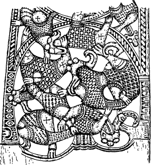 Рис. 26. Деталь украшенного в «зверином стиле» столбика каролингского времени
