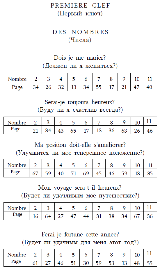 Кроме книги воспоминаний о Жозефине была издана книга гаданий по числам Ленорман. Приводим фрагмент из нее.