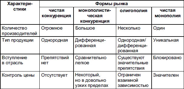 Таблица 1 Конкурентные формы рынка (позиция предложения)
