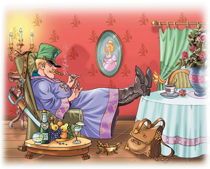 Солдат опять перебрался в хорошие комнаты, стал ходить в щегольском платье, и все его друзья сейчас же снова узнали его и ужасно полюбили.