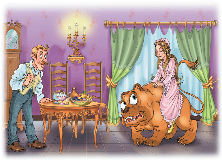 Собака сейчас же за дверь, и не успел солдат опомниться, как она явилась с принцессой. Принцесса сидела у собаки на спине и спала. Она была чудо как хороша; всякий сразу бы увидел, что это настоящая принцесса, и солдат не утерпел и поцеловал ее — он ведь был настоящий солдат.