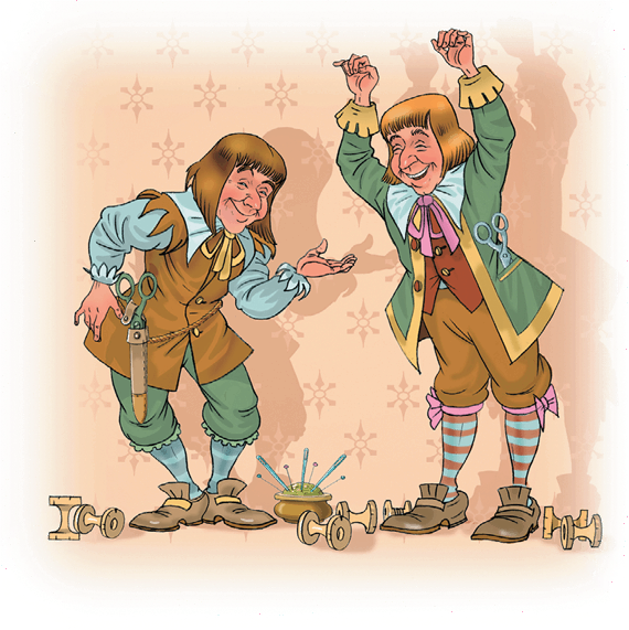 Всю ночь накануне торжества просидели обманщики за работой и сожгли больше шестнадцати свечей — всем было ясно, что они старались кончить к сроку новое платье короля. Они притворялись, что снимают ткань со станков, кроят ее большими ножницами и потом шьют иголками без ниток.