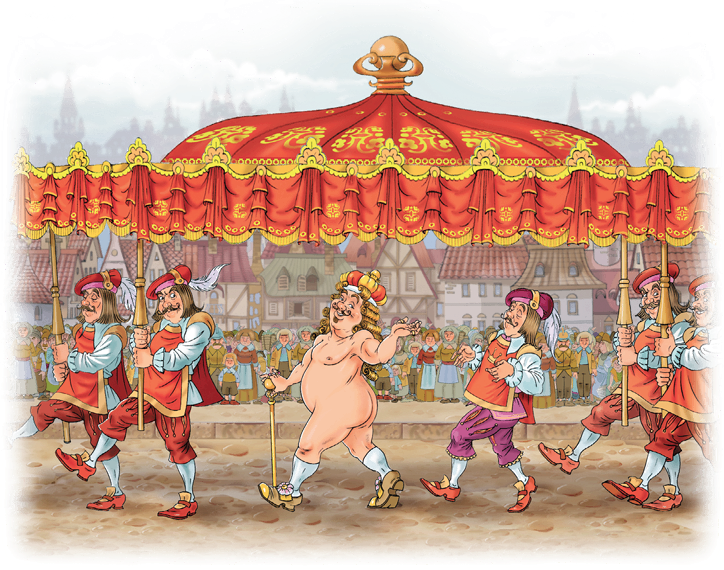 — Я готов! — сказал король. — Хорошо ли сидит платье?
