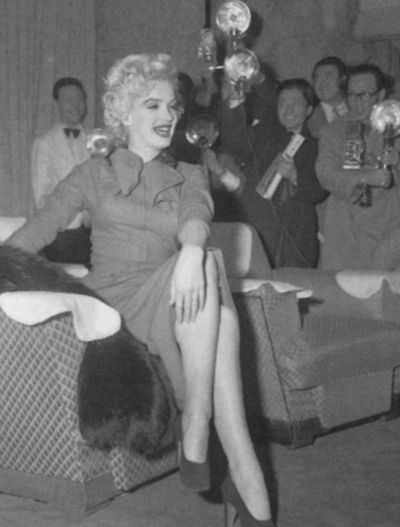 На пресс- конференции для Джо Ди Маджио все вопросы были обращены к Мэрилин. Февраль 1954 г.