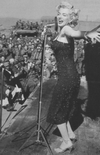 Выступление Мэрилин Монро в Корее под оглушительный рев сотен тысяч солдат и морских пехотинцев. Февраль 1954 г.
