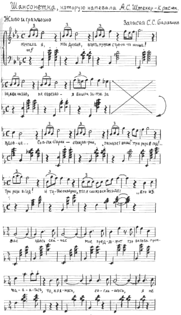 Но в другой раз Анна Сергеевна напевала игривую шансонетку:
