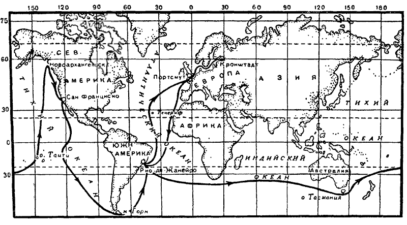 Маршрут кругосветного плавания фрегата «Крейсер».