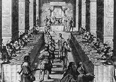 На королевские ужины в Фонтенбло Людовик приглашал главным образом тех дворян, которые побывали с ним в тот день на охоте, всех без исключения; для этого требовалось только подать соответствующее прошение. Обычно приглашенных мужчин было больше, чем женщин, а в целом от 8 до 20 гостей. Те, кто желал попасть на ужин, собирались около королевских апартаментов и ожидали, когда появится слуга со списком приглашенных: им, удостоенным высокой чести, завидовали те, кому не повезло. Принц де Крои скрупулезно записывал все свои впечатления: