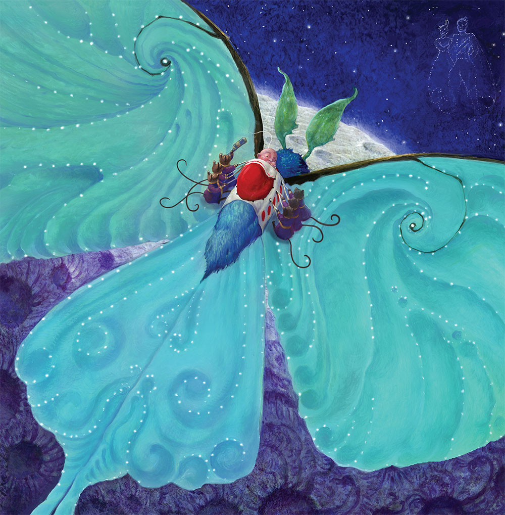 Жизнь Малыша на Луне была не так уж плоха. Каждый вечер Лунный Мотылёк облетал вокруг планеты, а Малыш, уютно устроившись на его мягкой пушистой спинке, мог вдоволь любоваться звёздами, в которые теперь превратились его родители. Мерное покачивание крыльев Мотылька убаюкивало Малыша, и вскоре ему уже снился Лучик и их Золотое время.