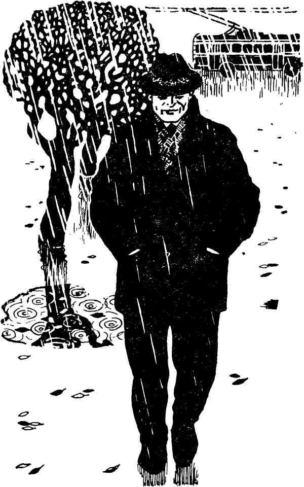 Когда он запирал стол, дверь отворилась, и вошел мужчина в темном плаще и серой шляпе.