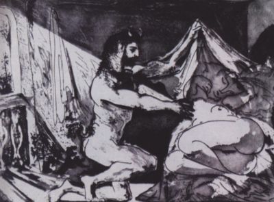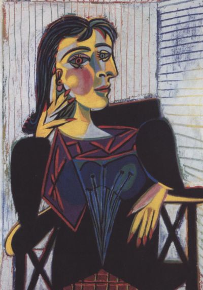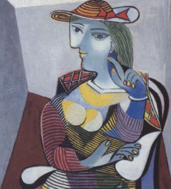 1907— Авиньонские девицы, Танец с покрывалами.Начало кубизма. Знакомится с коллекционером Канвейлером и Браком. Посещает Этнографический музей во дворце Трокадеро, увлекается африканской скульптурой. Посещает ретроспективную выставку Сезанна в Осеннем салоне.