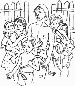 Он перескочил через плетень и взялся за руль властной рукой. Женька, Лида и Шурик смиренно отступили. Сережа приблизился, рукавом утирая слезы. Лида пискнула было: