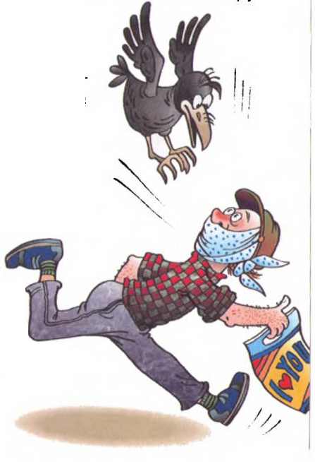 Тут первая ворона нырнула с дерева, спикировала и как чиркнет Василькова по голове.