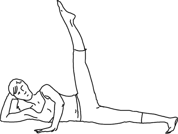 • Чем стабильнее положение верхней части корпуса, тем выше эффект от упражнения. Не прогибайтесь в талии и не «проваливайтесь» в плечах при выпрямлении ноги вверх.