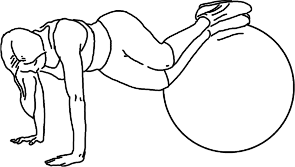 Лежа на спине, поместите ступни на мяч, выполняйте подъемы таза. Не позволяйте мячу двигаться.
