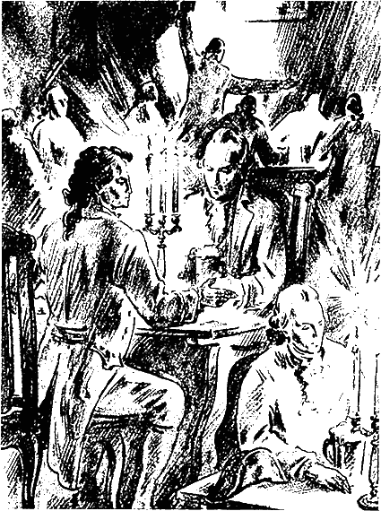 Шумной гурьбой они только что бродили по ярмарке, вступали в единоборство с силачами, дразнили медведя, щипали цыганок. Войдя уже подвыпившими, они выхватывали один у другого большой лист с гравюрой, пахнувший еще свежей типографской краской, и кричали: