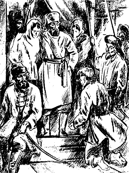 Из палатки Пугачева все женщины были высланы. На ковре сидели вкруг, по-турецки поджав ноги и посасывая трубки, одни ближние товарищи — Чумаков Федор Федотович, яицкий богатый казак, и Арефий.
