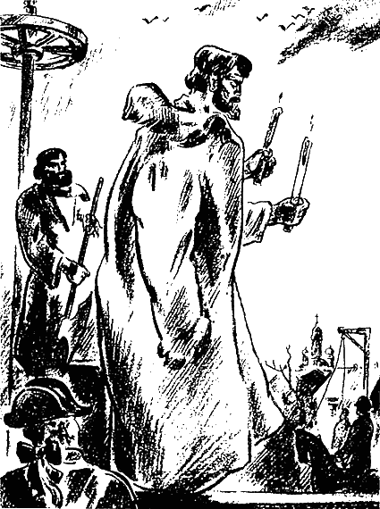 Вокруг главного места наставлено было со всех сторон плах и виселиц. С их перекладин спускались веревки с петлями. К ним приставлены лесенки, у каждой — ей предназначенный висельник и его палач.