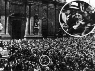 Рис. 5. Адольф Гитлер на митинге в Мюнхене, 2 августа 1914 года