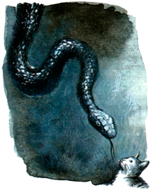 Праматерь смотрела на них. На этих троих, что сидели прямо перед ней. Какие же они грязные и жалкие! Особенно пёс. Острая боль вдруг пронзила её. Она свила кольцами своё массивное тело. Она не сводила с них немигающих глаз, гипнотизируя их взглядом. В её ватно-белой пасти кипел горький яд. — подумала она.