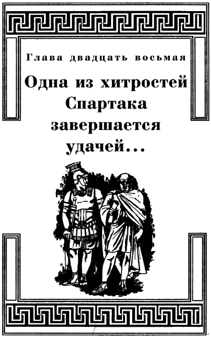 Несколько часов спустя разведчики вернулись с новостями — рассказом об итогах битвы рабов с римлянами и с письмами от некоторых легатов Красса, связанных с Помпеем дружескими отношениями.