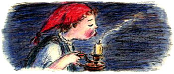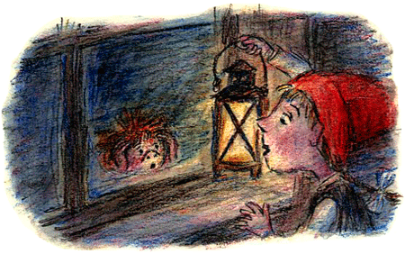 Все замерли. Мама выпрямилась, Малютка Ульв уткнулся носом в Папину рубашку, Сювер пошире раскрыл глаза, а Гури-Малла прикусила от нетерпения губу. Только Папа Ниссе и Петтер не радовались. Их обоих что-то беспокоило. Папа никогда бы не признался даже самому себе, что боится, а Петтер в отчаянии понял, что всё пропало, — вскоре кто-нибудь зажжёт фонарь, и ниссе увидят Кривулю…
