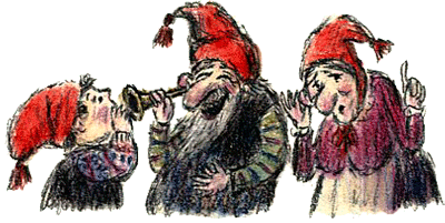 Все гномы бросились к окну. Малыши взобрались на скамью. Мама Ниссе сняла с плиты горшок с горячей кашей и тоже побежала смотреть на падающий снег. Папа Ниссе быстро-быстро захлопнул крышку сундука с варежками и шарфами. И даже Бабушка-старушка заковыляла к окну, выбравшись из уютного кресла-качалки. Для ниссе день, когда выпадает первый снег, — самый счастливый в году.