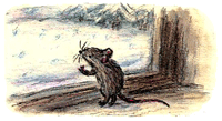 Тут все посмотрели на подоконник: мышка стояла на задних лапках и как заворожённая наблюдала за танцем снежинок.