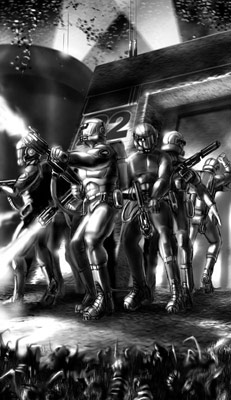 У кого-то из ребят не выдержали нервы. Трое или четверо десантников сломя голову бросились наутёк. То ли рассчитывали прорваться сквозь бесконечные ряды Тучи, надеясь на огнемёты за спинами, то ли просто потеряли самообладание... Мы видели несколько пламенных вспышек, а затем огонь умер, заваленный мокрой массой тел. В переговорниках грянули последние звериные вопли боли и ужаса. Правда, длились они недолго. От Тучи не спасала даже «глухая» броня.