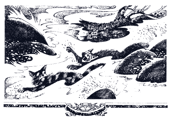 Луна, выглянув из-за рваного облака, пролила студеный свет на реку и безмолвные камни. Темные фигуры уходящих котов медленно поднялись к вершине утесов, а затем скрылись из виду.