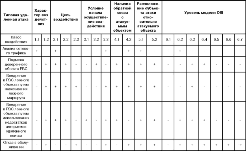 Классификация типовых удаленных атак на РВС приведена в табл. 3.1.