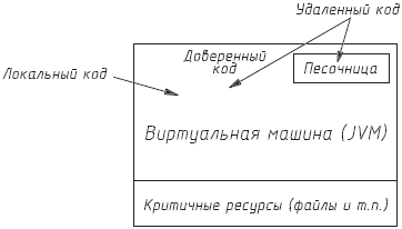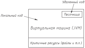 По мере развития Java развивалась и система безопасности. В JDK 1.0 (Java Development Kit) основу системы безопасности составляли три компонента – Verifier (верификатор), ClassLoader (загрузчик классов) и SecurityManager (менеджер безопасности). Эта модель известна под названием sandbox (песочница), в ней выполняются Java-приложения, загруженные из сети (рис. 10.1).