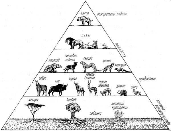 И все же никогда плотоядные не были причиной вымирания травоядных. Напротив, на протяжении многих миллионов лет хищники спасали их от голодной смерти, поддерживая в саванне тот количественный уровень животных, который она могла прокормить. Долог и таинствен путь солнечного луча. Сначала при его участии создаются клетки травы. Траву поедают жвачные. Мясом жвачных питаются плотоядные, которые в свою очередь становятся жертвой более сильных хищников. Кости и остальные объедки достаются гиенам и другим пожирателям падали.