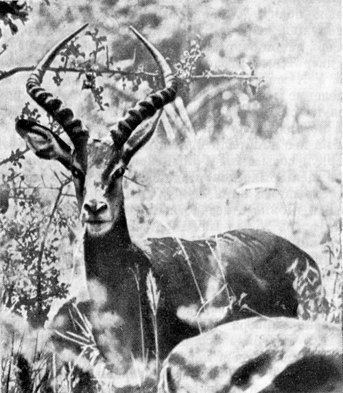 Это были импала, в основном самки. Привлек внимание африканца и вызвал его нескрываемый восторг «султан» гарема — крупный, породистый самец. Самцы импала, склонные к полигамии, сгоняют изящных самок в многочисленное стадо и с яростью защищают от соперников. Счастливые владельцы гарема неусыпно следят за стадом, настойчиво, хотя и не грубо, подталкивают отбившихся самок, то и дело вскидывают голову и нюхают воздух и время от времени стремительно, подобно молнии, кидаются на молодого смельчака, отважившегося посягнуть на их собственность.