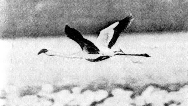 Не случайно африканские фламинго избрали своим местопребыванием горячие зловонные воды уединенного озера Патрон. Неблагоприятные для большинства живых организмов условия спасают их от преследования врагов, начиная от людей и кончая львами, гепардами, шакалами, гиеновыми собаками и хищными птицами. Кроме того, для воспроизводства рода фламинго большое значение имеют особенности биологической среды и этом районе: наклон берега, уровень воды, процент щелочи в лагуне… Малейшее нарушение равновесия здесь может привести к катастрофе, как это было в 1962 году. Длительные и обильные осадки в сезон дождей повысили уровень воды в озере, который не изменялся за последние десять лет. Армия фламинго вынуждена была искать новое место для гнездования и приземлилась в районе озера Магади, который птицы раньше избегали из-за большого процента щелочи в воде. К концу сентября из яиц вылупились восемьсот тысяч птенцов, по от засухи процент соли в озере повысился еще больше, и птенцы, покинувшие гнезда, оказались в плену у кристаллической массы, облепившей их лапки, как гипс.