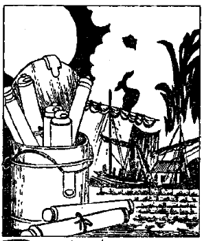 К середине ноября (по нашему календарю) похвастаться успехами Цезарь не мог. Все его усилия выбить Ганимеда с его позиций оказались напрасными, несмотря на отчаянные стычки, вылазки и отдельные успехи в рукопашных схватках. Во время одной такой схватки на Гептастадионе Цезаря вместе с его легионерами столкнули в воду, и он спасся, лишь добравшись вплавь до галер в большой гавани. Его плащ императора остался в руках солдат Ганимеда. Историки описывают нам, как Цезарь, подняв записные таблички над головой, хладнокровно плывет к судну, в то время как египетские солдаты осыпают его стрелами.