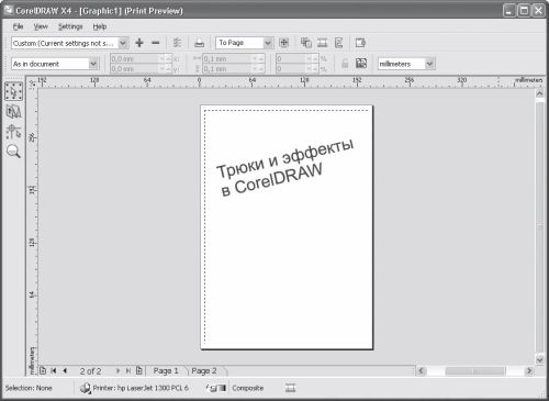 Щелчком на кнопке Properties (Свойства) вызывается специфичное для данного принтера окно, в котором можно выбрать, в частности, размер и ориентацию печатной страницы. Если выполнить команду меню View ► Show ► Printable Area (Вид ► Показать ► Печатная область), то в окне документа штриховой линией будет отображаться граница области печати.