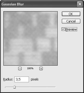 Чтобы удалить (иногда говорят «подавить») растр в отсканированном изображении, нужно сначала слегка размыть его, а затем восстановить четкость. Первую операцию можно осуществить с помощью одного из фильтров группы Filter → Blur (Фильтр → Размытие), например Gaussian Blur (Размытие по Гауссу). Подберите величину размытия — Radius (Радиус) – такой, чтобы растровая структура стала нечеткой, но общие контуры изображения остались достаточно резкими (рис. 6.4).