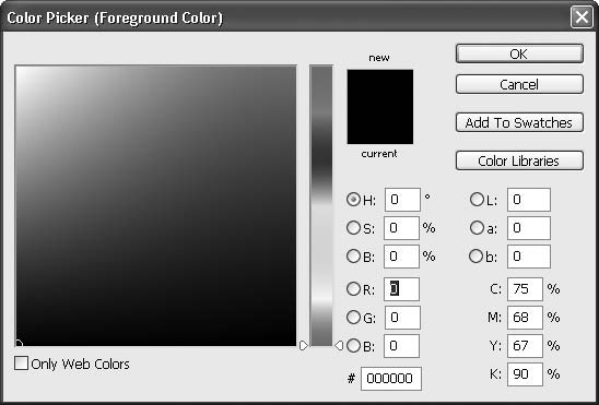 В этой программе существуют два типа цвета: основной (Foreground) и фоновый (Background). Первый используется всеми инструментами рисования, а второй – инструментом Eraser (Ластик) (см. ниже). Образцы того и другого цветов находятся в нижней части палитры инструментов (рис. 6.10).