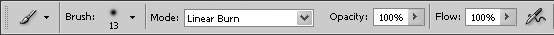 Он действует точно так же, как его прототип – обычная кисточка. Нажмите кнопку мыши, проведите инструментом Brush (Кисть) по изображению, и там, где пройдет указатель мыши, пикселы окрасятся в основной цвет. Главная особенность состоит в том, что инструмент имеет зону действия (она тоже называется кистью), которую можно настроить. На панели параметров (рис. 6.18) есть возможность задать параметры этой зоны.