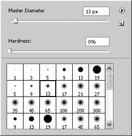 Рис. 6.17. Инструмент Brush (Кисть) на палитре инструментов