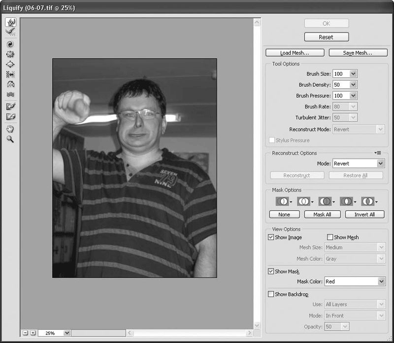 Рис. 7.9. Окно фильтра Liquify (Разжижение)